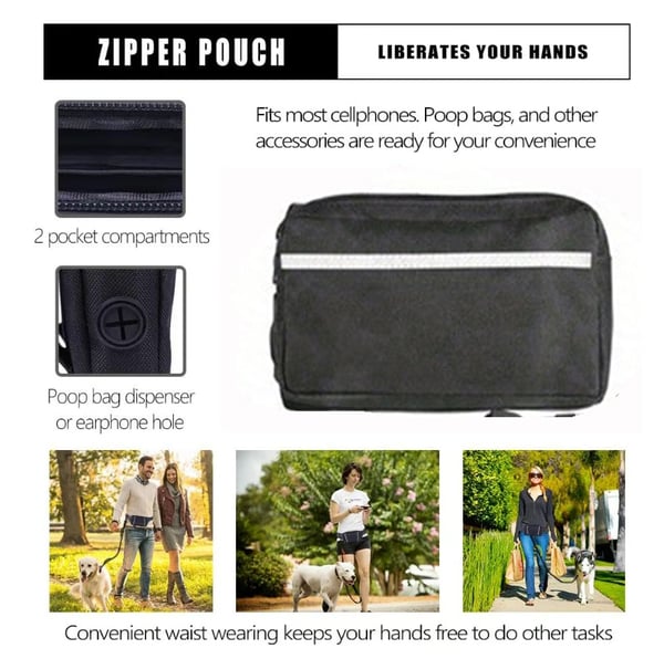 ✓ Geïntegreerd multifunctioneel tasje – Handige opbergruimte met twee vakken en opening voor poepzakjes, ideaal voor telefoon, sleutels, snacks en meer – alles binnen bereik en perfect georganiseerd.